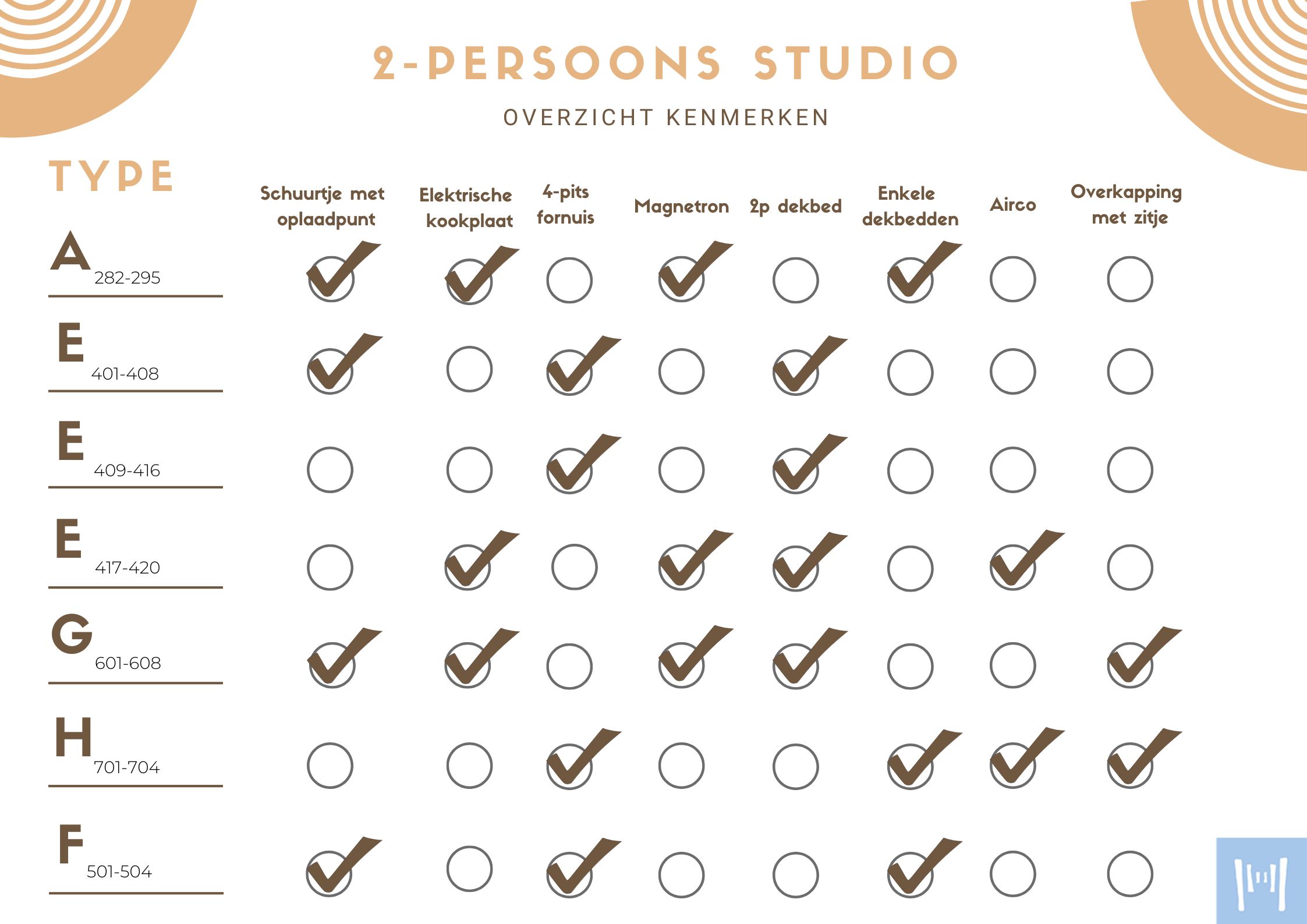 Studio type A (282-295) Studio type E (401-408) Studio type E (409-416)